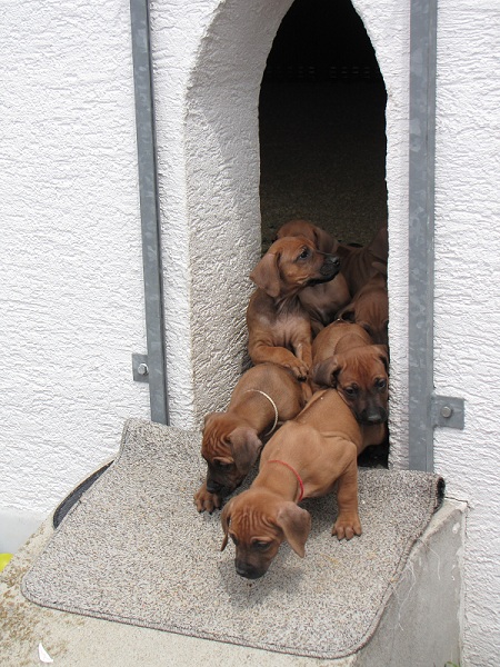 - Die Welpen mit 6 Wochen: