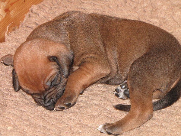 | Die Welpen mit 2 Wochen - die Augen haben sich
