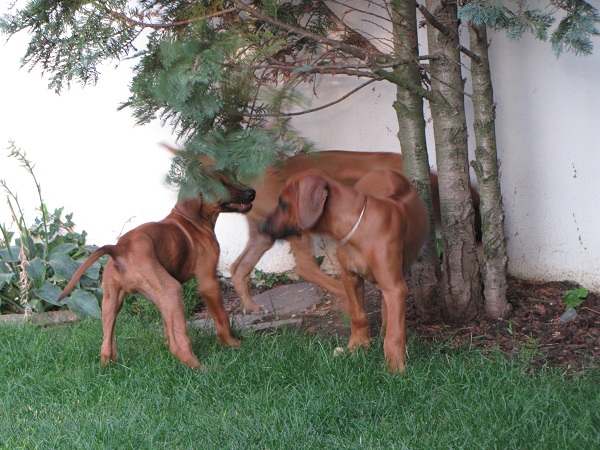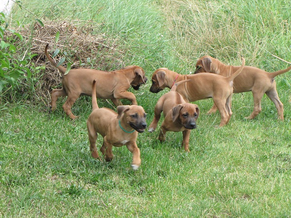 | Gemeinsam mit Mama Shakila unternehmen die Welpen bereits Ausflüge ins nahe Feld: |